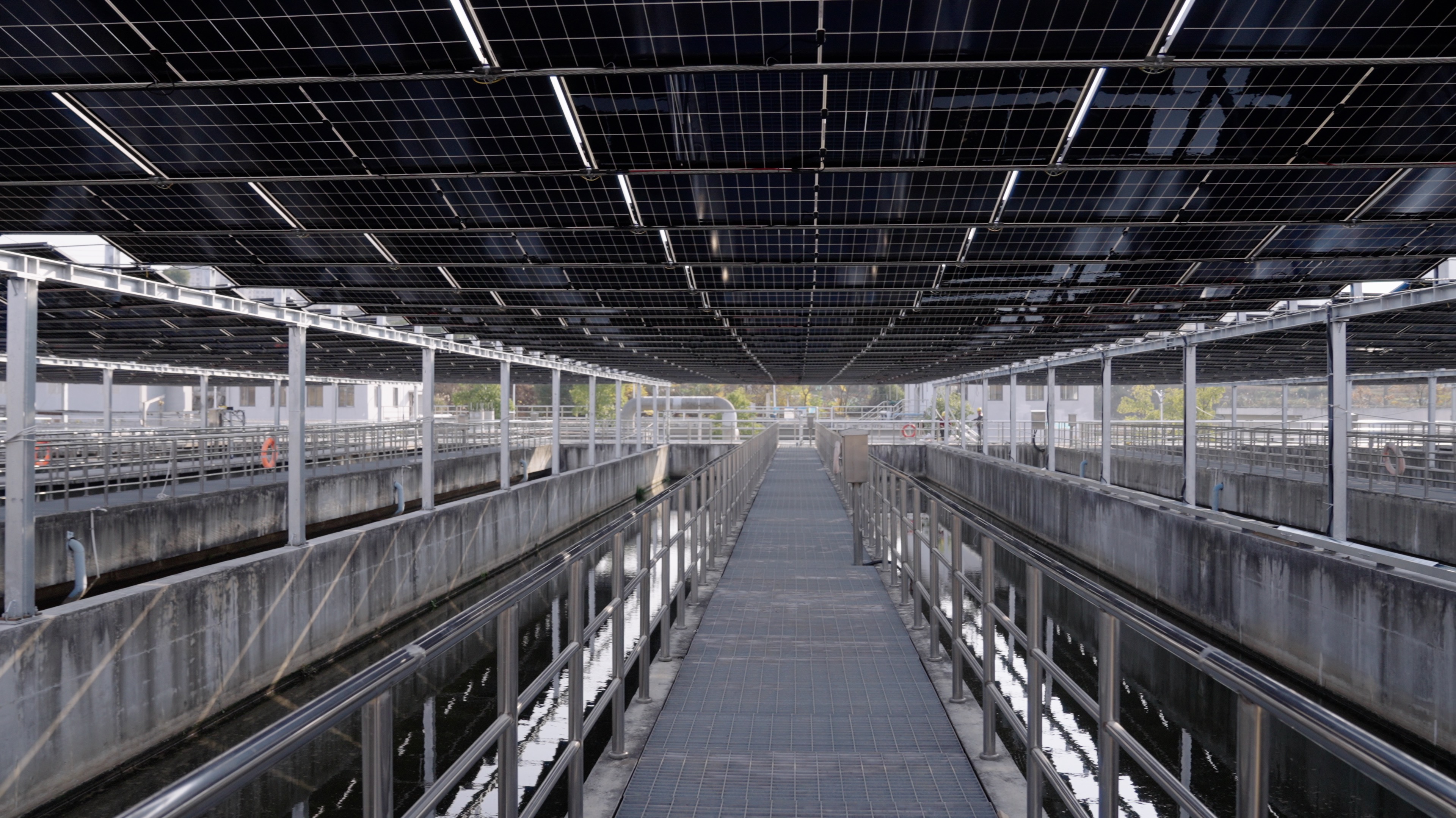 未來,一排排深藍(lán)色的光伏組件將如羽翼般鋪展在水廠上方,與澄澈水流交相輝映,構(gòu)成一幅“水光共舞”的和諧畫卷。