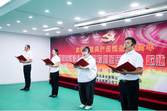 一百年風(fēng)雨歷程,一百年崢嶸歲月。為重溫黨的光輝歷程,喜迎中國共產(chǎn)黨百年華誕,5月26日,市水務(wù)集團自來水有限公司舉行“重溫黨史誦讀經(jīng)典、不忘初心砥礪前行”誦讀、歌詠比賽。公司員工相聚一堂,用誦讀、歌唱的方式,讀黨史、念黨恩、跟黨走,上了一堂深刻的紅色黨史教育課。