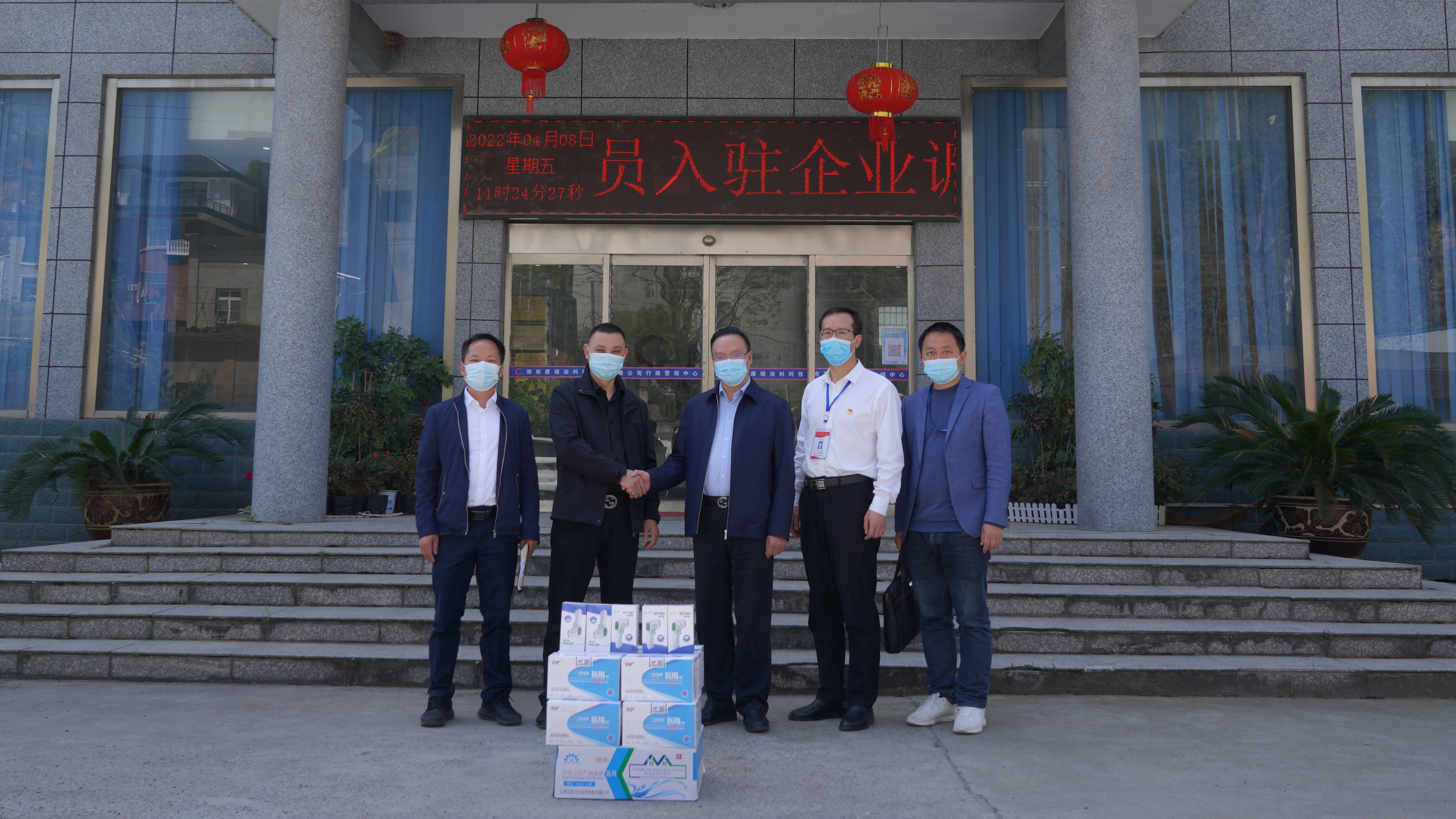 4月8日,懷化市水務(wù)投資集團(tuán)有限公司黨委書記、董事長(zhǎng)楊秀和、市幫扶企業(yè)辦康瑞涂料公司特派員申湘平一行到市重點(diǎn)工業(yè)企業(yè)集團(tuán)幫扶對(duì)象——湖南康瑞涂料科技有限公司捐贈(zèng)防疫物資,調(diào)研復(fù)工復(fù)產(chǎn)和企業(yè)發(fā)展工作。